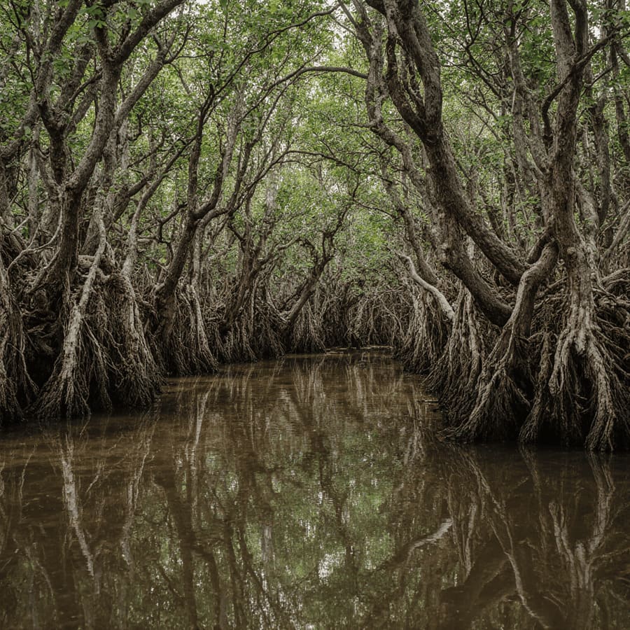 Вдоль заливов и устьев рек на юге страны тянутся мангровые заросли. Их главные герои — деревья Rhizophora с характерными ходульными корнями, которые удерживают их в зыбком грунте. Мангровые леса — это «детские сады» для рыб и крабов, а также мощнейший природный барьер, защищающий берег от эрозии и цунами.